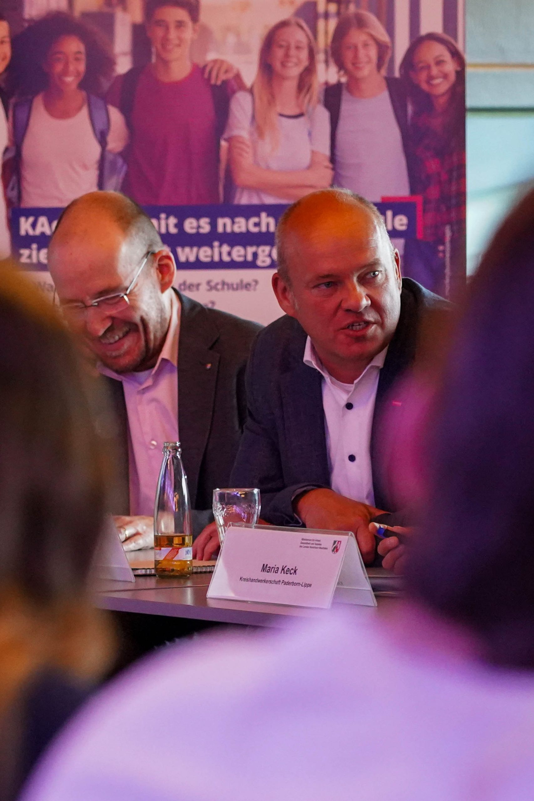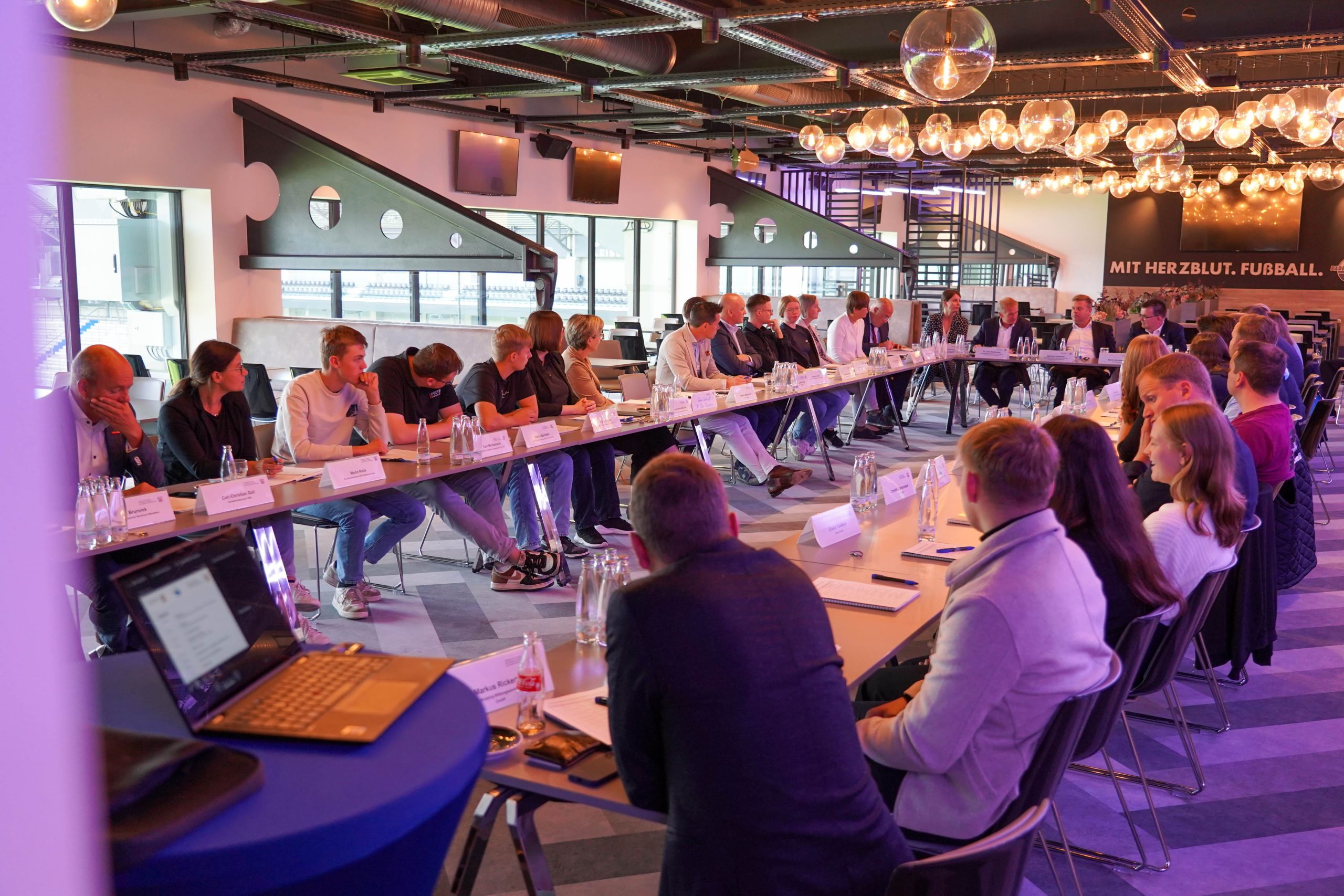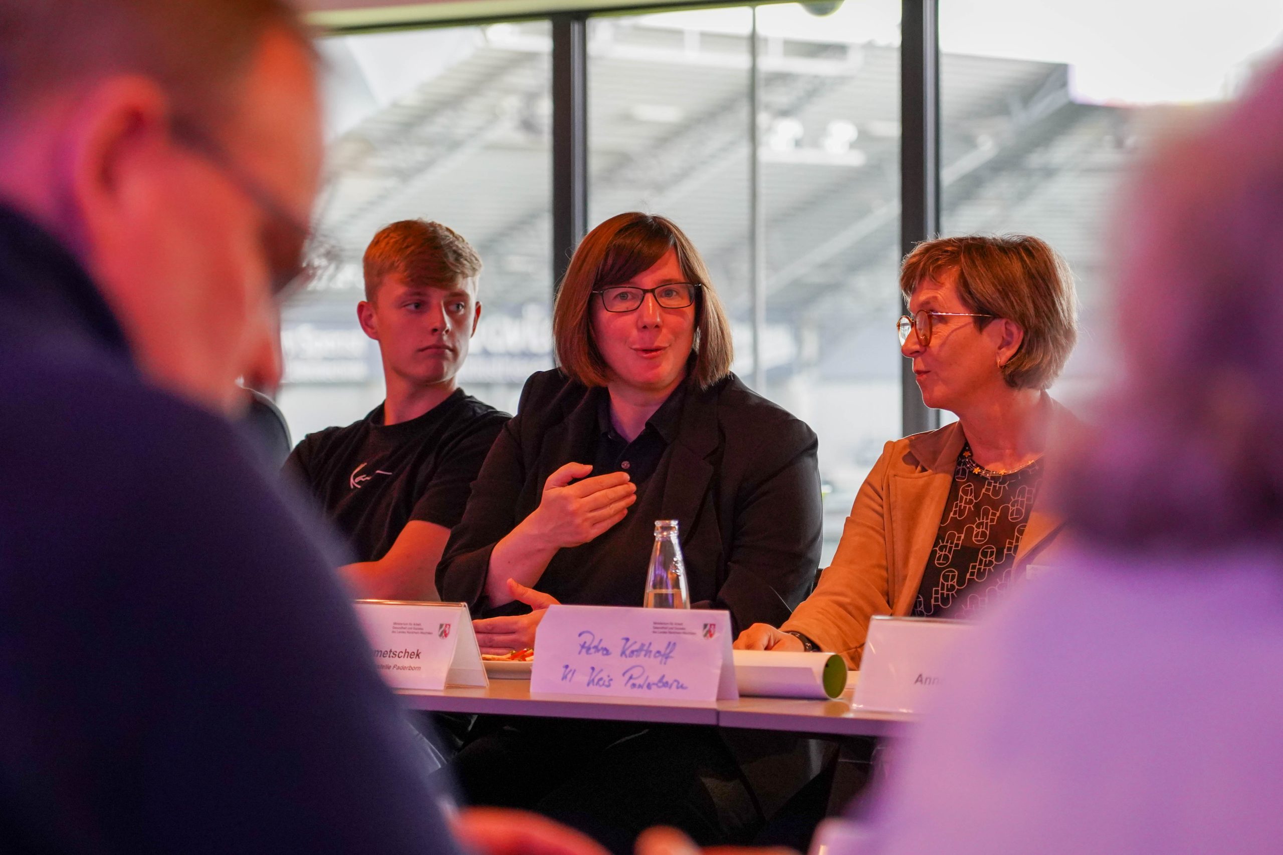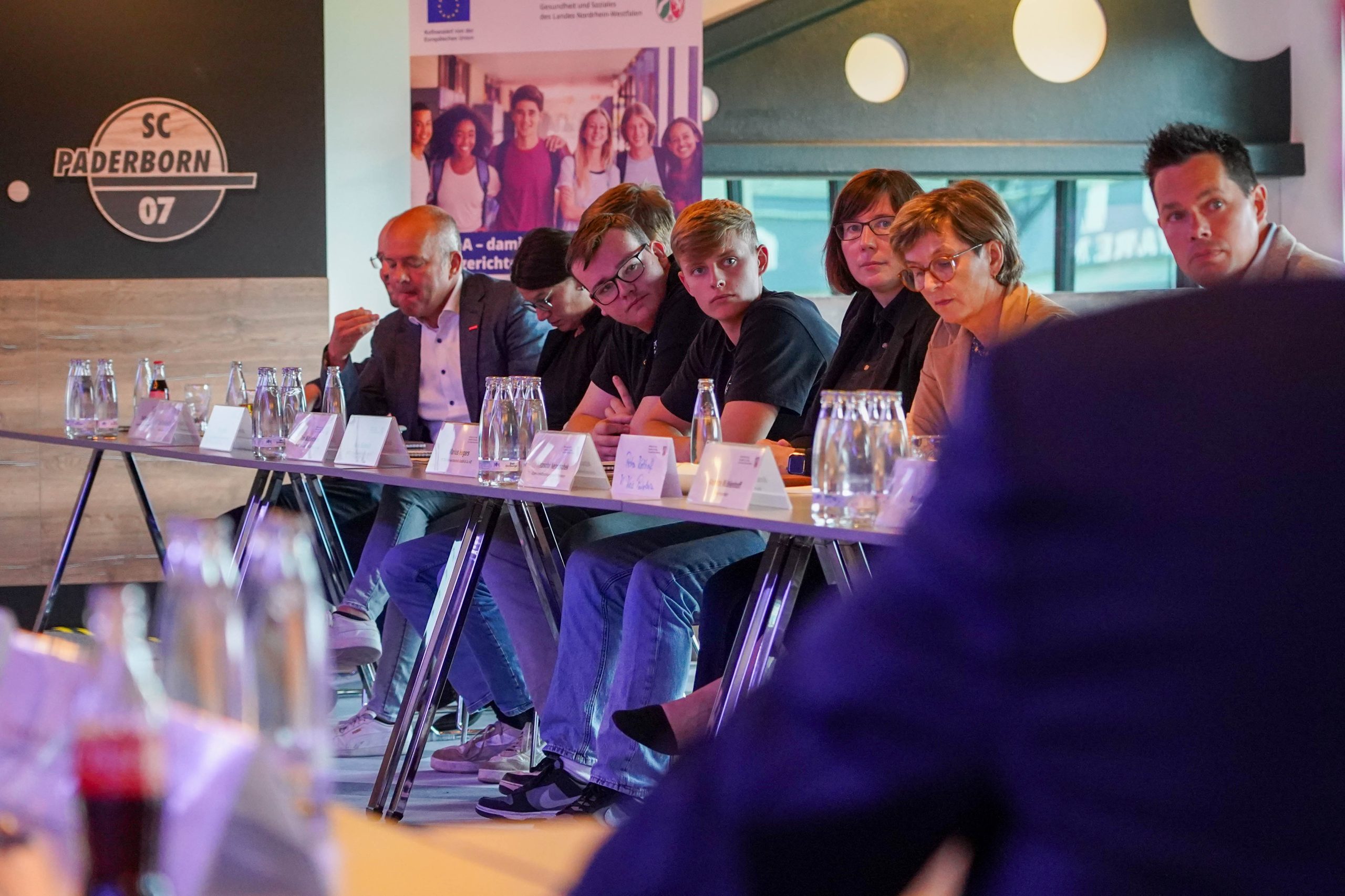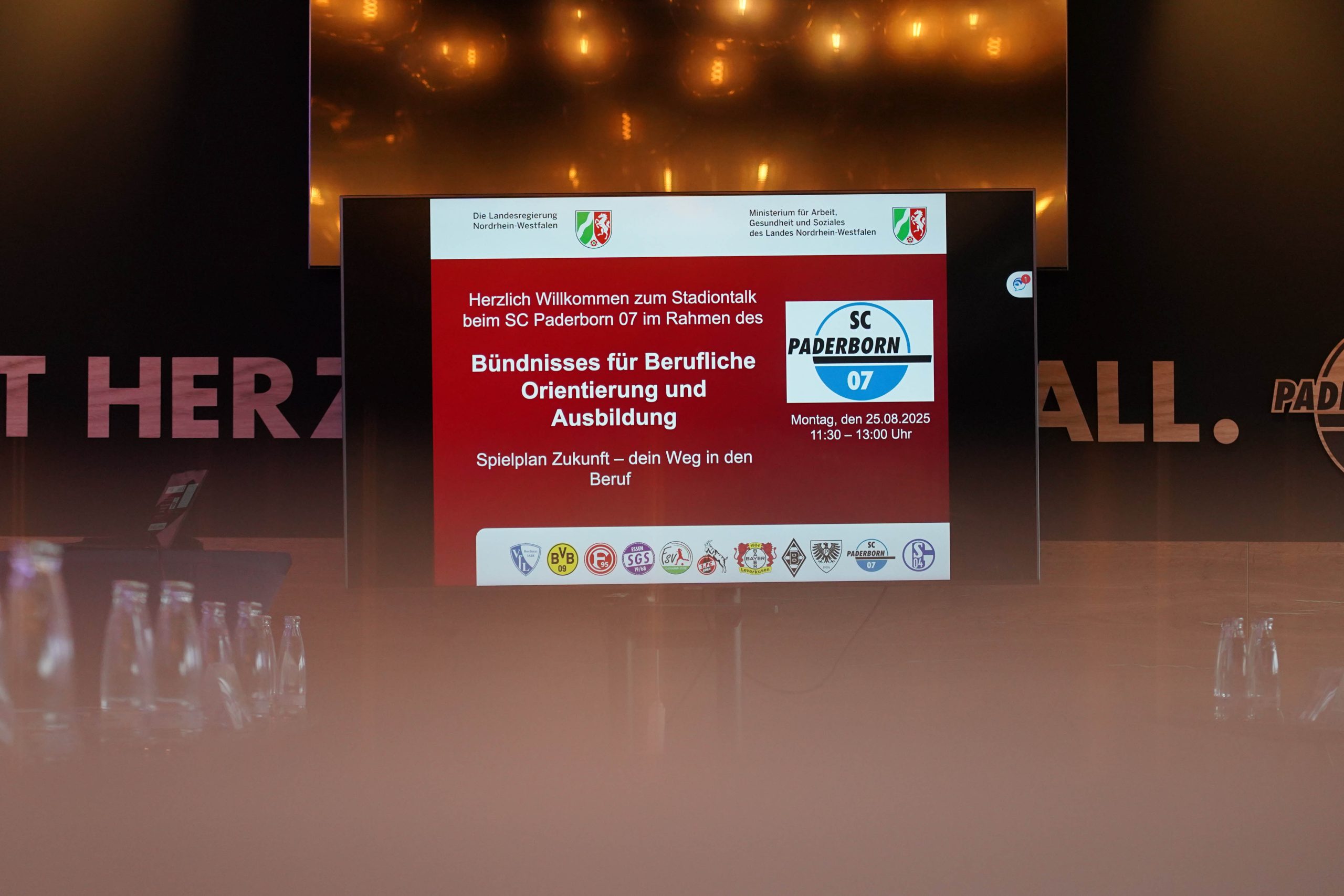 Im Rahmen des Bündnisses für Berufliche Orientierung und Ausbildung „Spielplan Zukunft – dein Weg in den Beruf“ trafen sich u.a. Vertreterinnen und Vertreter der Landesregierung Nordrhein-Westfalen, des Kreises Paderborn, der IHK, der Kommunalen Koordinierungsstelle, der Agentur für Arbeit sowie verschiedener Ausbildungsbetriebe mit Auszubildenden in der Home Deluxe Arena, um über Perspektiven und Chancen der Berufsausbildung zu diskutieren.